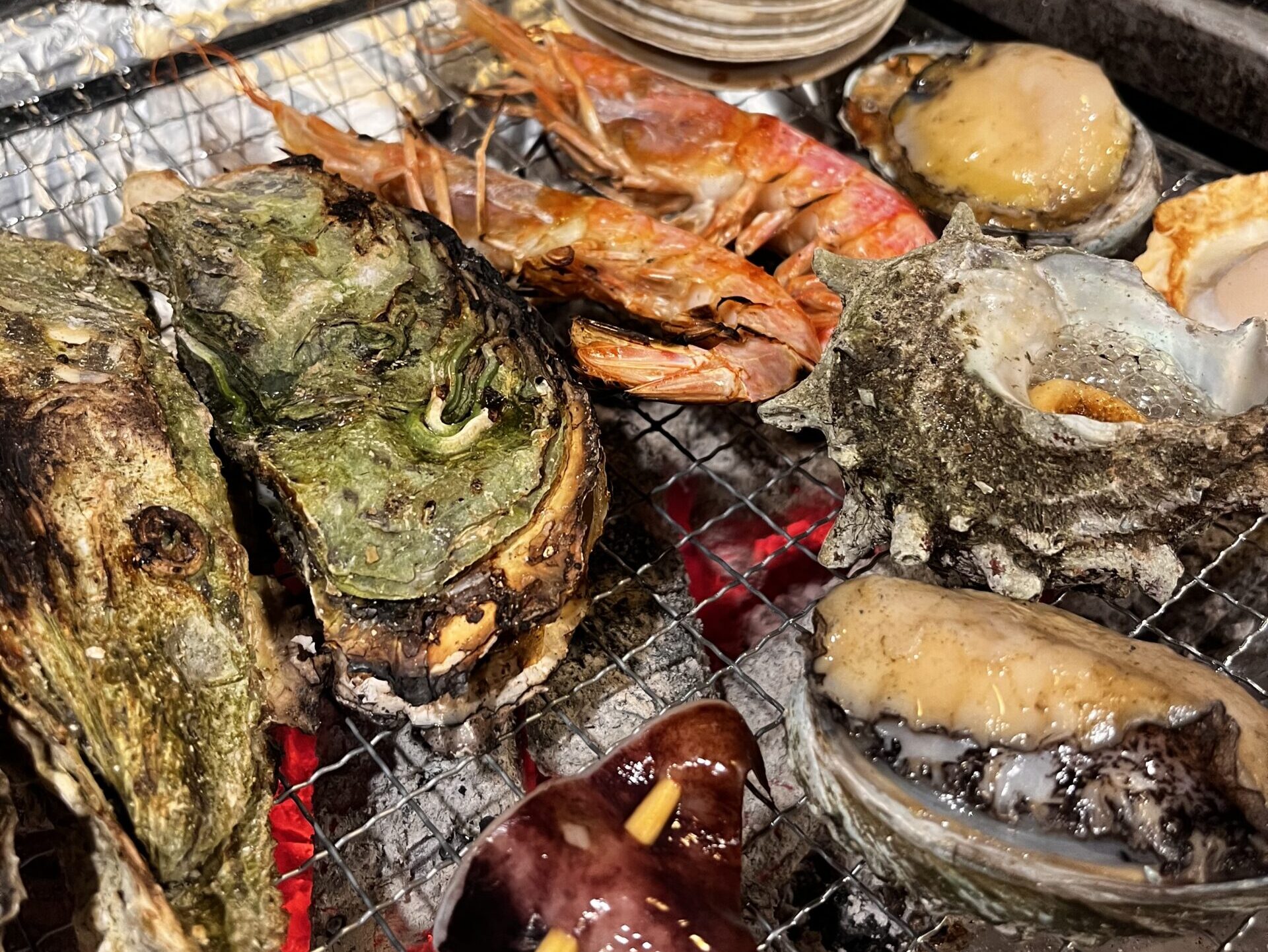 貝類: ホタテ、サザエ、アワビといった、普段はなかなか手が出ない高級貝類も豊富にラインナップ。炭火で焼くと旨味がギュッと凝縮されます。