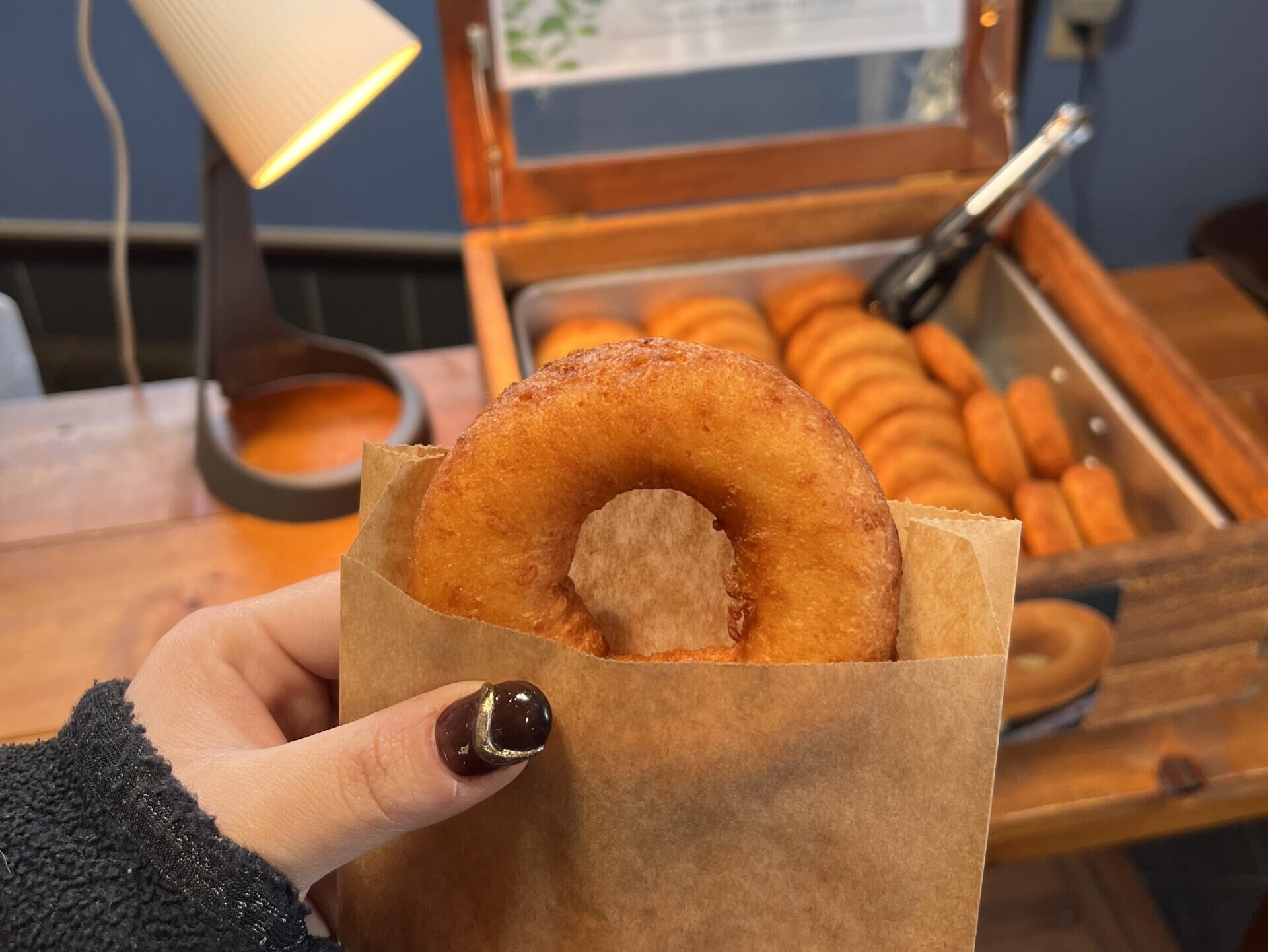 驚くほど軽くて甘さ控えめなので、ついつい「もう一個…」と手が伸びてしまう魔性のドーナツです。何個食べても重くないのが嬉しいポイント!